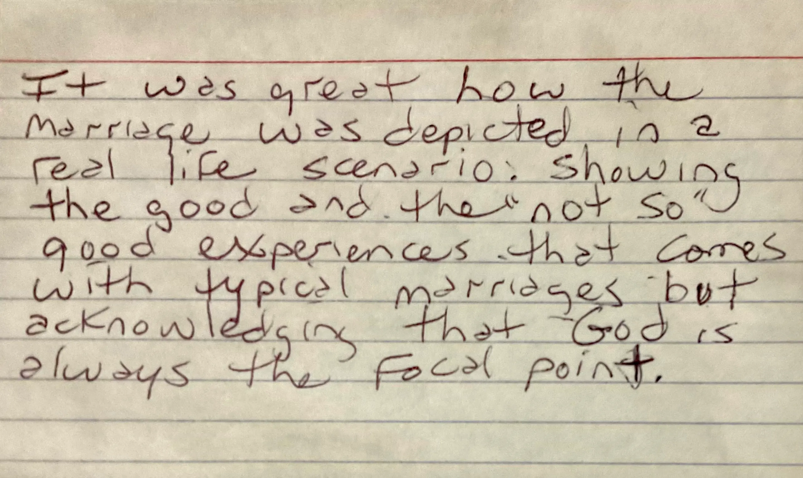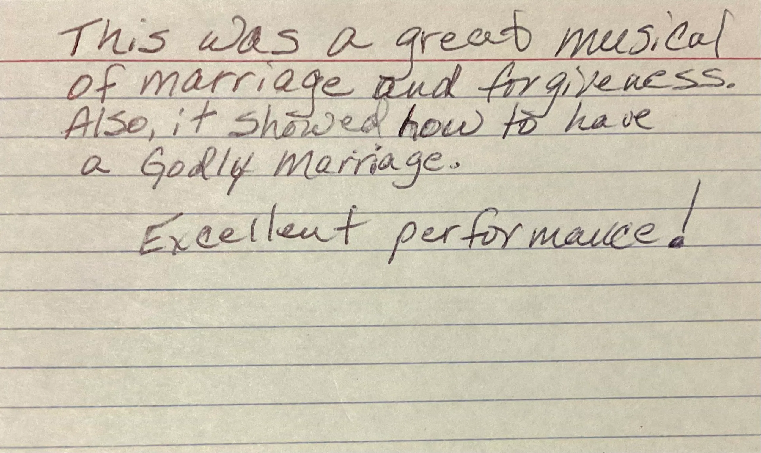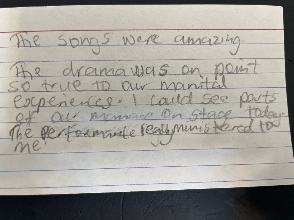 The musical encourages couples to be transformed by the scriptures and not conform to the non-biblical culture that promotes transactional-based love. It reminds couples to seek Godly counsel, especially in their local church assembly and from other Christian professional resources available to them.