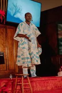 A Christmas piece that tells the story of the birth of Jesus from an African perspective. It consists of various elements from different genres beautifully knitted to convey the depth and essence of this important story, and the earnest need for a savior in this broken and sinful world. This story is told and expressed in an uncommon theatrical medium, hence, a One-Man musical.Synopsis: The sinfulness of man grows strong, they have turned away from the Almighty God, and crimes, injustices, sickness, and disaster continue to grow due to their iniquities. In this African village (the World, symbolically) plagued by severe famines and strife, where hope has disappeared and the heart of its people is hardened, and no one has answers to alleviate the situation. No one to reconcile humanity back to its creator, God.One of the wise men in the village, a Priest took it upon himself to plead with Olodumare (The Almighty God) for mercy. (Yorùbá Ewì – chants) He mourns for their sins and appeals to God to send a deliverer, the promised Savior, “Didn’t My Lord Deliver, Daniel.” The Priest heard of the newborn baby and questioned “Who is this baby?” “What was He born to do?” and “How will he achieve His purpose?” He kneels in prayer and seeks understanding from the Almighty God as he sings, “It’s Me, O Lord.”In a vision, while the Priest slept, he received answers to his questions that the baby King, Jesus, has brought good tidings of great joy to all. He was born to deliver all from their sin and reconcile them to God by taking on himself their burdens and sin, Isaiah 53:4-6. The Priest proclaims this deliverance and invites Jesus to come, as he sings “A Litany for Advent.” Bursting in joy, “Gbó ohùn àwon áńgélì tí ń korin” the Priest praises God in reverence for the newborn King, Jesus, sang “Isaiah 9:6” and invites all to join in the worship “O Come Let Us Adore Him.” In exceeding celebration, he sings a song of adoration “Oba Ńlá Ni, Olúwa” (The Great King is the Lord).Duration: 60 minutesInspiration: 2chronicles 7:13-14, Isaiah 9:1-7, Isaiah 53:6, Psalm 95:1-7, Psalm 148, Matthew 2:1-12, Luke 2:1-14, John 3:16, and more.Musical ideas: A blend of Yorùbá language chants, culture, music, and various Western music (African American Spirituals, Gospel, and Classical Music). The chants are in the Yorùbá language from the Western part of Nigeria, while the monologues, spoken words, and most of the songs are in the English language.COMPOSITIONS